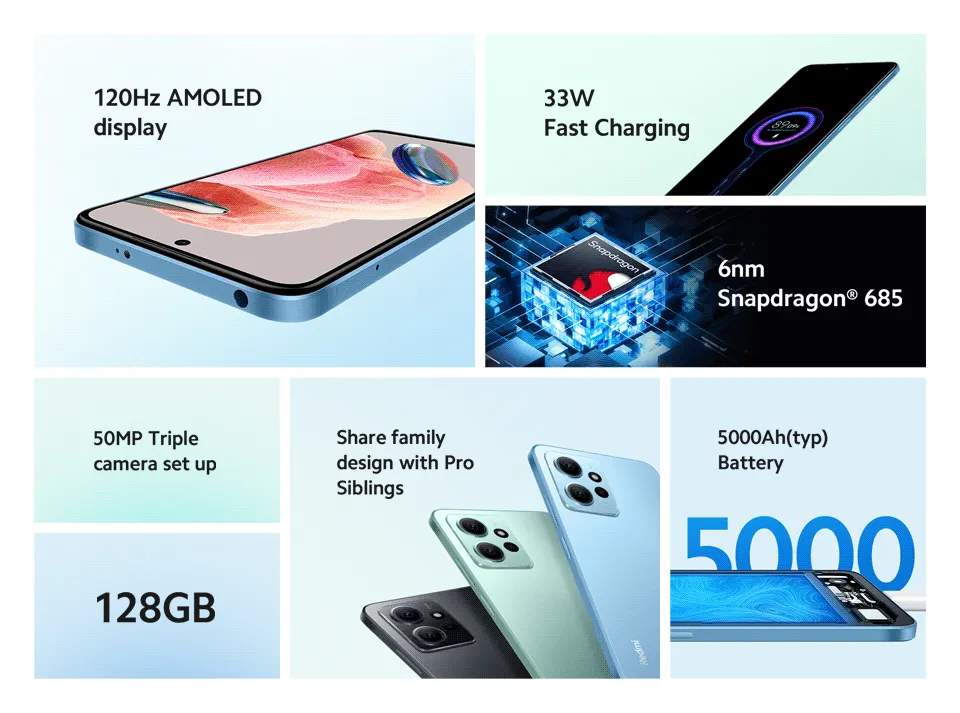 小米红米Note 12 4G 128GB Rom+6GB Ram/全球版/1年小米本地保修(免费:钢化玻璃+后盖)
