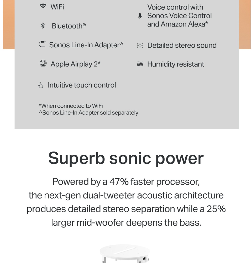[新增]Sonos Era 100无线智能扬声器,带蓝牙和语音控制[7月初交付]
